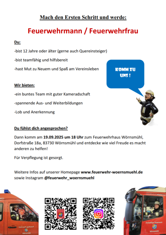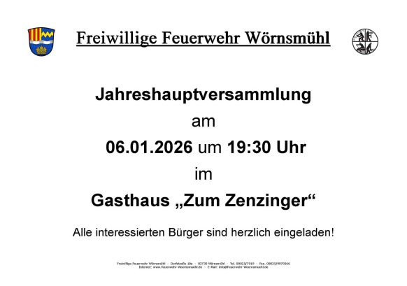 Die Feuerwehr Wörnsmühl kann in diesem Jahr die Jahreshauptversammlung am 06.01.2021, bedingt durch die aktuelle Corona Lage nicht durchführen.